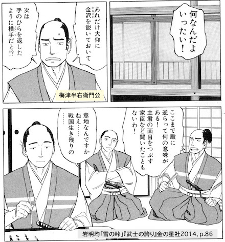 (さらに余談。岩明均さんの「雪の峠」という作品に梅津公が登場してます(右図)。