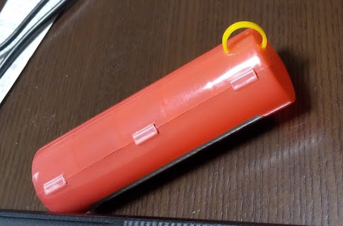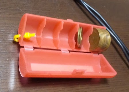 さらにコインケースに小さな穴をあけて、そこに紐とかストラップを付けるようにしたところ、