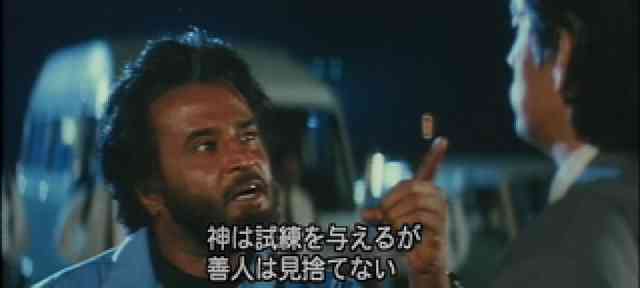 そして最後。一度は刑務所に送った宿敵・アンソニーが脱獄して、その アンソニーとの対決があるんですけど。 このアンソニーって巨悪なはずなんですけど、その巨悪っぷりがいまいちピンと 来ない‥のは私の感性が鈍いからだとしたら仕方ないですけど。 まあ脱獄後のアンソニーがムチャクチャいい味出してましたので、個人的にはGoodですけど。 その対決があって終わるわけですが。面白かったです。 SUPER STAR RAJNI も十分堪能できましたし。