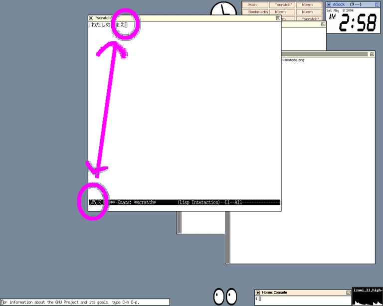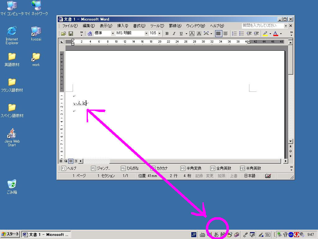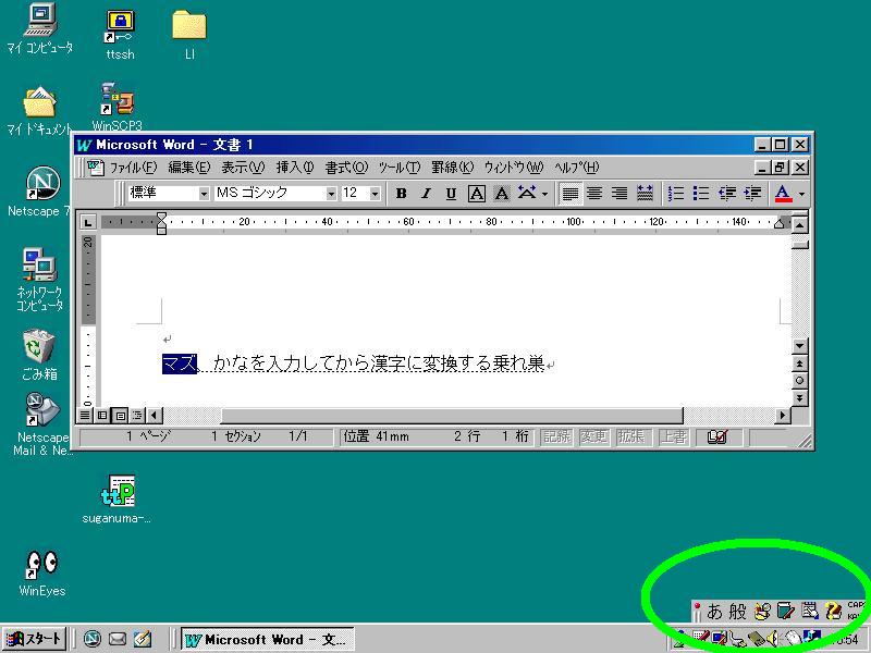 ‥‥これだと視線をあまり動かさなくても、視界のスミのところで IME のオン/オフの状態が確認でき、文字編集時のムダな視線の 移動が抑えられる → 文書入力の効率アップ! か??