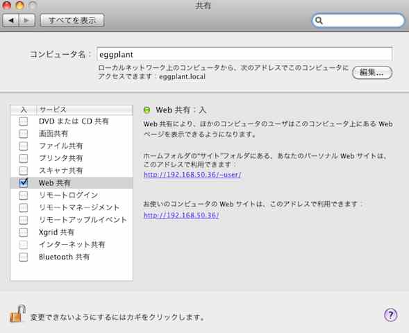 「システム環境設定」の「共有」の中にある「Web共有」というやつ、これを