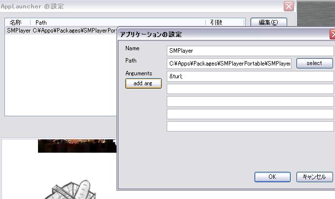 Pathの欄に起動したいアプリケーションの場所(ここではSMPlayerPortableが