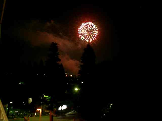 でも学校で花火を見てしまうと、その後しばらく学校から動けない (街中と学校の中間地点で花火大会をやるので、花火が終わってからしばらくは 交通規制と人混みがスゴくて学校から出れない)のが難点だな。![]()