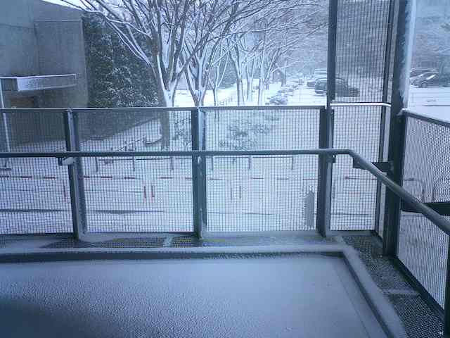 冬が来た! 一日じゅう、積もらない程度の雪。夜は路面凍結してそうで怖い。
