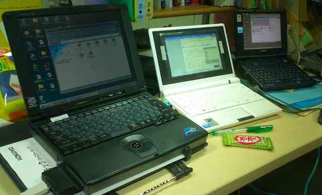 ちょっと前の話になりますが、 Eee PC (白)、買いました[12]。 使ってみて感じるのは、キーボードが打ちにくいこと。 同じミニノートである、 写真右の Sony VAIO PCG-U3 と比べるともう雲泥の差で、 圧倒的に VAIO のほうが上です。Eee PC は、 私の指の使い方との相性の問題かもしれませんけど、やたらキー入力の 取りこぼしが多くて、現状ではメインマシンとか、何かの作業をするための マシンにするのは まったく無理、ストレスで死にそうになるだけ、という 感じなんですけど、逆にオモチャとして見ると なかなか面白いオモチャだなー、 という感じです。ですので、 購入してからこれまで結構あれこれ いじってきたのですが、最近ふと 気付いたことがあって‥‥それは何かというと、 私にとって この Eee PC というのは、何といいますか、 設定遊び(?)が目的のマシンな感じがありまして、ということは、 設定遊びが ひととおり済んでしまうと、もう することがなくなってしまう 気がするんですよね。んー。 このうえなきバッタ物感に魅せられてやまない Kingsoft Office か 何か買って Office マシンの代替機という感じですかねー。でも、 それだったら、CPUパワーがなくても、キー入力が容易な、 もっと別のマシンのほうが良さげですしね。んー‥‥