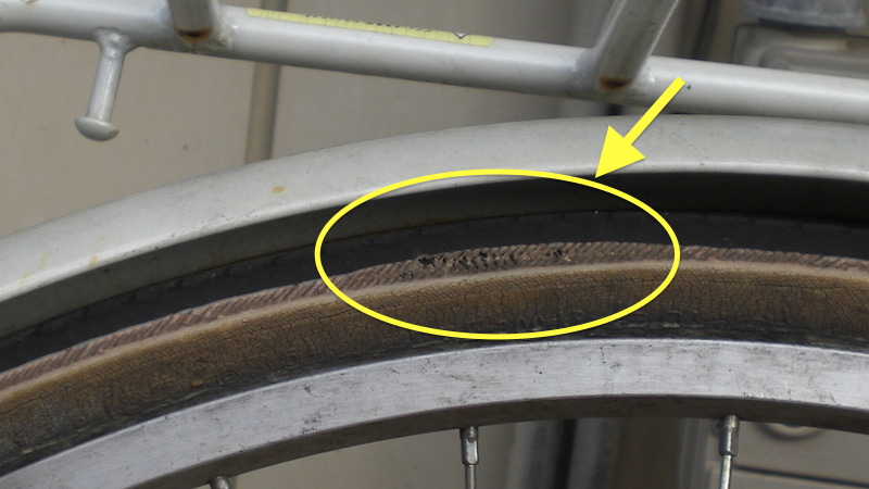ところで。自転車がパンクしてしまったんですよ。んで、しばらく自転車を放置してたんですけど、 ついに意を決して自分でパンク修理したんですけど。後輪のタイヤが かなりボロボロになってましたので、 タイヤ交換すべきか悩んだ挙句、とりあえず今回はパンク修理だけしようと決めて作業したんですけど。 パンク修理を終えて、あらためて後輪のタイヤを見てみたら。‥‥あれ?