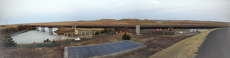 先週くらいに撮った、藤塚の貞山堀のあたりから見た太平洋です。 あいかわらず土木工事の真最中ですね。半年くらい前だと、ここから「ぼうけん広場」裏が 見えるところまで行けて、その先の道路も着々とできつつあるような感じだったんですけどね。 今は貞山堀に沿ってできた新道は名取川河口のあたりから200メートルくらい? で 立入禁止(工期不明)になってて、全然進めなくなってます。うー。 ちなみに北のほうは高砂橋より下流側の堤防道は絶賛工事中。まあ自転車道が 後回しになるのは仕方ないですけど、8年たってもこれかー、復活はもう10年もかかるのかなー、 と思うと大津波がいかに猛威だったかを改めて感じます。![]()