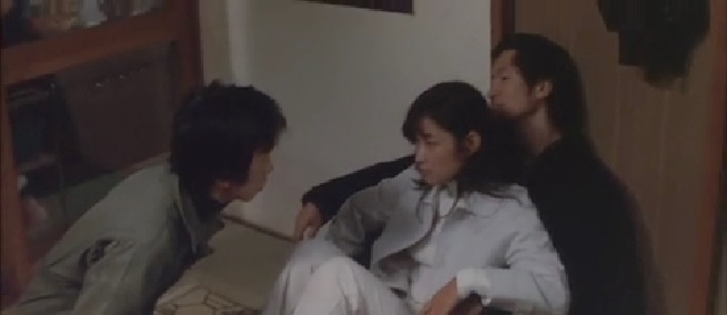 そんなこんなで60分経過。そろそろ終わりは近いんだけど、どうなるんだろ? とか思ってみてたら、なんと。 もうひとりの父親候補、堕胎してほしがっていた同級生が サキとアタルの前に現れるのです。 曰、学校やめて働いてサキの子を養うから結婚してくれ、 どっちの子でもいいから、と。しかし敗色濃厚と気づいた少年は 「俺、死ぬ」と言い出します。サキがそれに「死ねば!」と 答えたため、少年は砂浜を沖に向かって‥て、おいおい!